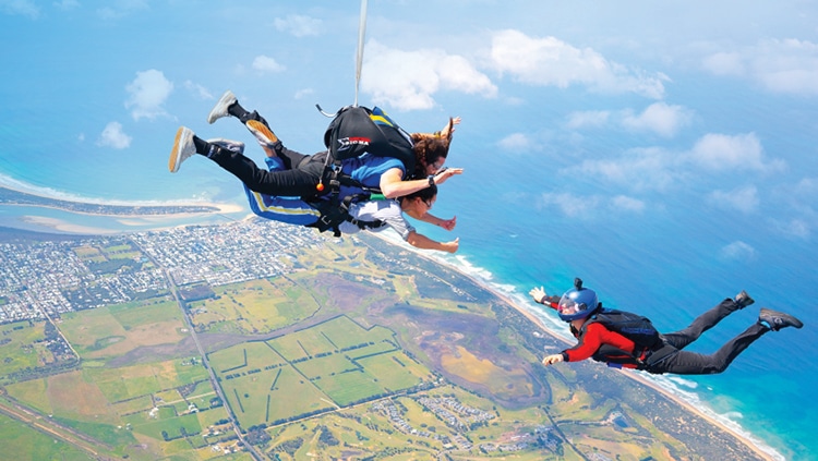 距离墨尔本市仅一个多小时车程,我们位于大洋路(Great Ocean Road)的跳伞基地诚邀您来探索维多利亚州这片迷人的海岸风光。在菲利普港湾(Port Phillip Bay)周边及吉隆市(Geelong)进行一段悠闲的巡航后,您将迅速穿上降落伞装备,在令人惊叹的瞬间翱翔天际。