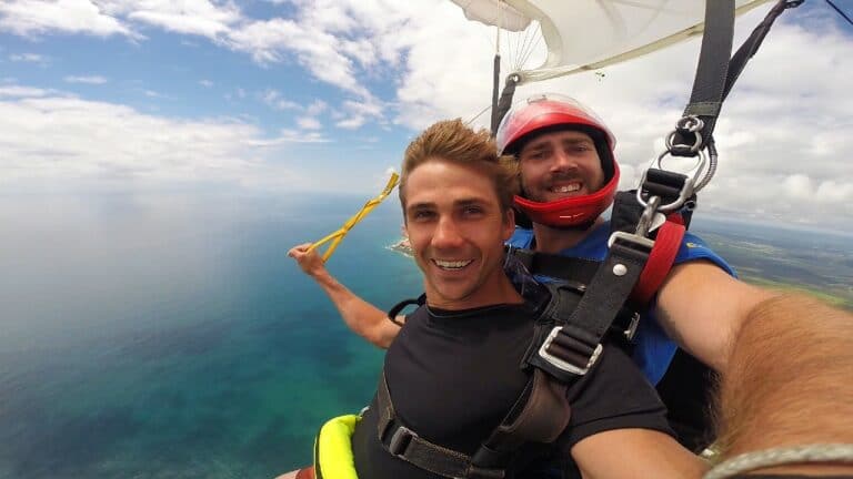 你只需要一点勇气和一套泳衣。现在,你已经正式准备好在努萨(Noosa)开启一场改变人生的假期——而跳伞体验无疑是行程清单上的重头戏。从阳光海岸机场起飞,这次跳伞之旅将带你降落在标志性的库伦海滩(Coolum Beach)或风景如画的河畔地点。 从高达13,000英尺的高空一跃而下,俯瞰附近玻璃屋山脉中的比尔瓦山。令人惊叹的地点加上心跳加速的体验,这简直就是我们所听闻过的最完美的欢乐配方!