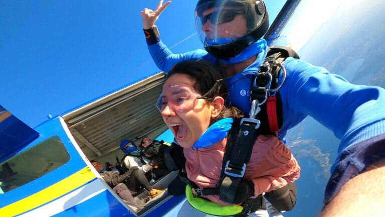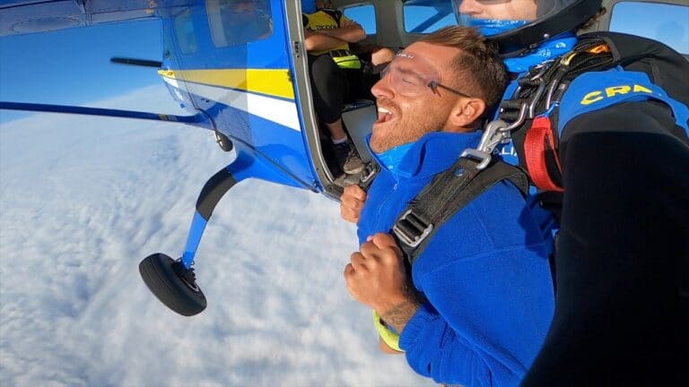 通常,我们会直接降落在跳伞区,让您全程清晰地见证整个体验过程——从穿戴装备、登机到落地。在某些情况下,例如天气状况表明需要采取更安全的方案时,我们可能会降落在Blacksmiths海滩,以确保所有参与者的最高安全标准。安全是我们的首要任务,我们将始终根据当时的实际情况选择最合适的降落地点。