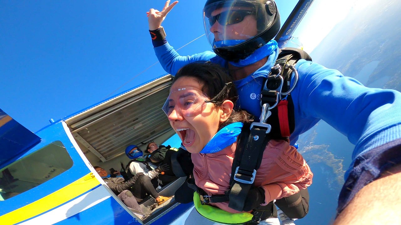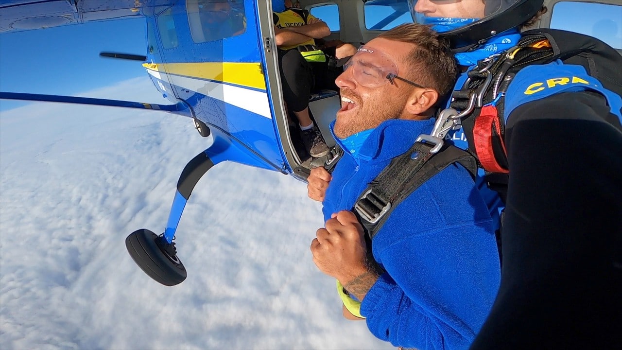今天过得超开心,我和韦诺一起跳了伞。他真是个传奇人物,让我整个体验过程都倍感轻松!谢谢你,老兄……也谢谢整个团队!