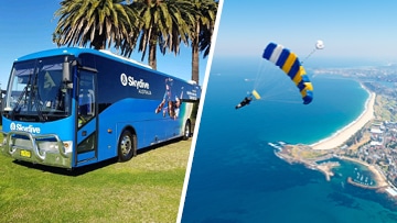 想在悉尼附近体验跳伞吗?在卧龙岗,您可以在新南威尔士州原始海岸线上空高达15,000英尺的高空纵身一跃。我们是大悉尼地区唯一提供海滩跳伞服务的机构,因此,从高空降落在卧龙岗的海滨公园或沙滩上,这绝对是一次无与伦比的体验。 从悉尼市中心出发,可享受免费往返接送服务;您也可轻松搭乘火车前往北卧龙岗,或自驾前往,在美丽的卧龙岗小镇度过美好的一天。