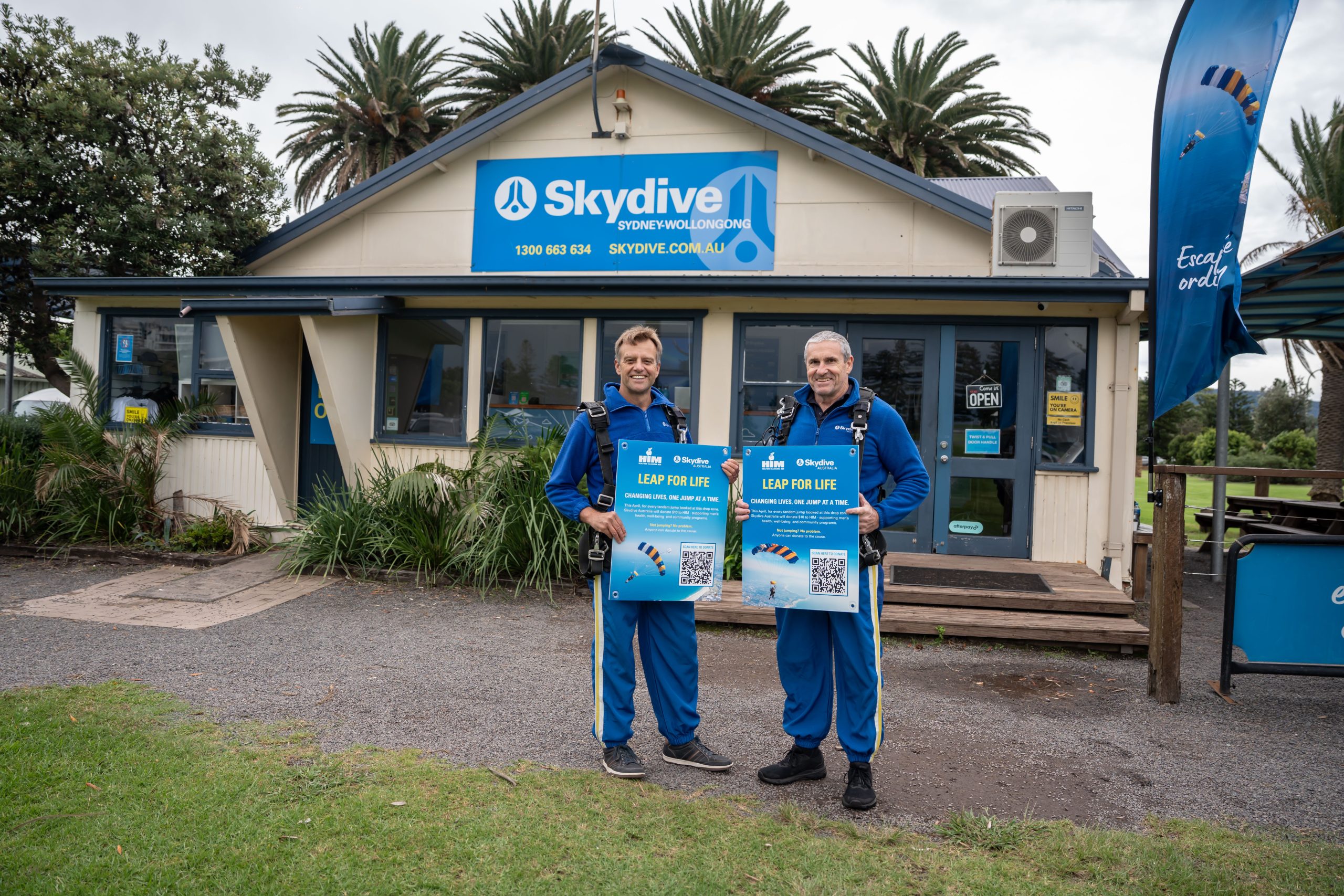 作为“Leap for Life”活动的一部分,伍伦贡跳伞中心(Skydive Wollongong)的每次跳伞活动都将支持“伊拉瓦拉男性健康组织”(HIM)——这是一个致力于改善伊拉瓦拉地区男性健康、福祉及社区联系的当地组织。