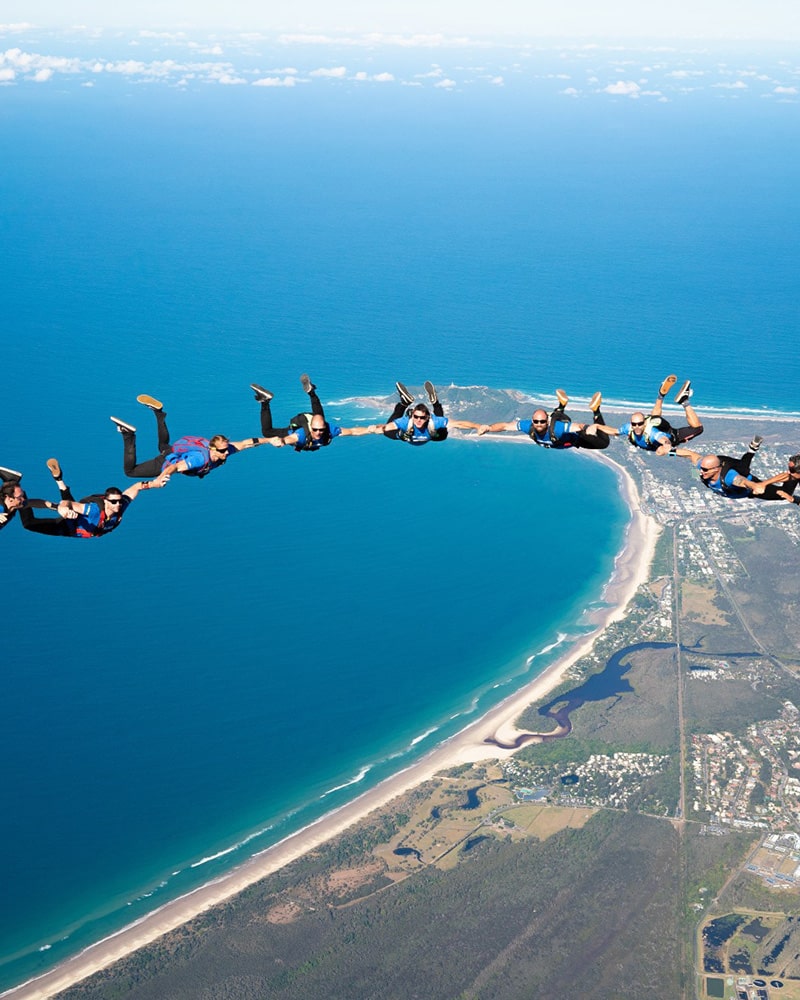 在拜伦湾和大洋路跳伞基地,我们配备高速飞机,最多可容纳20人同机起飞,让您随时都能与同伴一同起跳。选择与我们一起跳伞,您将体验壮丽景观、专业友好的团队氛围、定期训练营、多项目个性化指导,以及我们始终坚持的安全至上理念。